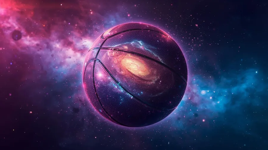Impresionante Diseño De Baloncesto Cósmico Que Fusiona El Espacio Y Los Deportes Con Colores Vibrantes Y Texturas De Galaxia Para Un Impacto Visual Único.
