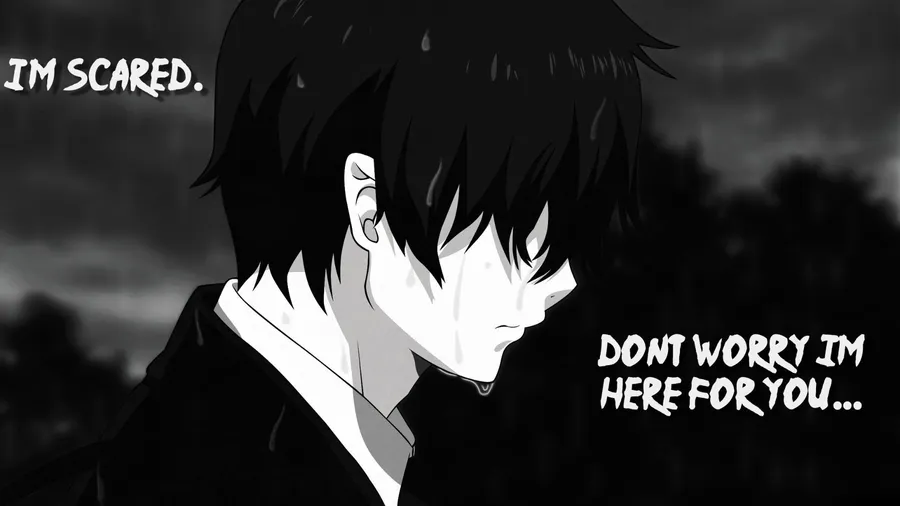 Cita Emocional De Anime Que Muestra Tranquilidad Y Apoyo Durante Momentos Difíciles Con Un Personaje Expresando Miedo Pero Ofreciendo Consuelo.