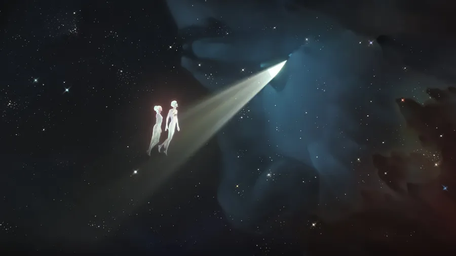 Un Momento Submarino Misterioso En Arcane Temporada 2 Que Presenta A Dos Personajes Iluminados Por Un Solo Rayo De Luz En Un Entorno Acuático Oscuro.