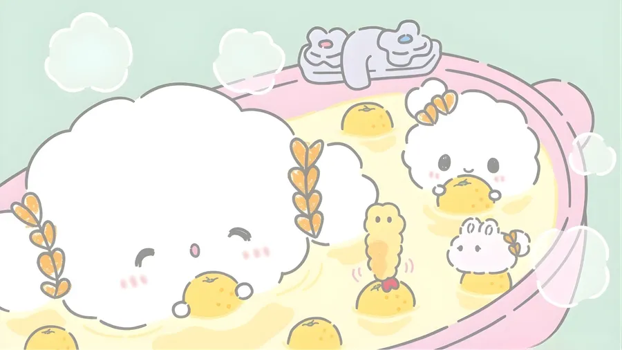 Adorables Personajes Cogimyun Disfrutando De Un Cálido Baño Con Suaves Colores Pastel Y Expresiones Encantadoras, Perfectos Para Fanáticos De Ilustraciones Kawaii Y Acogedoras.