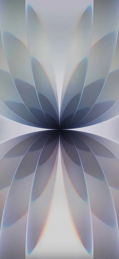 Diseño Abstracto Simétrico Que Se Asemeja A Una Flor Translúcida Con Pétalos En Capas En Tonos Suaves De Gris Y Azul, Creando Un Efecto Visual Moderno Y Elegante.