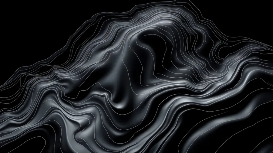 Impresionante Fondo De Olas Oscuras Para Macos Tahoe Que Presenta Líneas Suaves Y Fluidas Y Un Elegante Diseño Monocromático Que Mejora La Estética Del Escritorio.