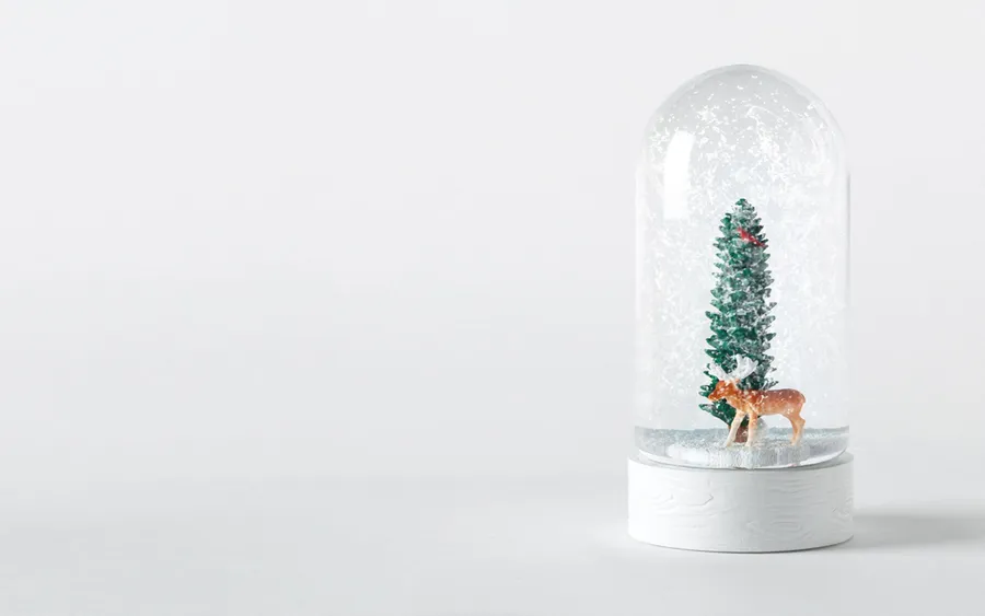Un Simple Globo De Nieve Que Presenta Un Pequeño Árbol De Navidad Y Un Zorro En Su Interior, Perfecto Para Decoración Navideña Minimalista.