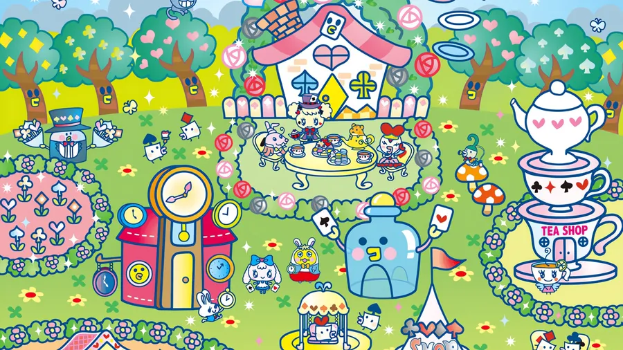 Explora Un Colorido Jardín Tamagotchi Lleno De Personajes Juguetones, Objetos Interactivos Y Encantadores Detalles Que Dan Vida Al Mundo De Las Mascotas Virtuales.
