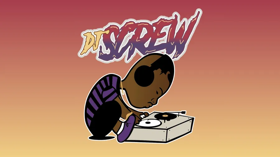 Ilustración De Dj Screw Girando Discos, Simbolizando Su Influencia En El Hip Hop De Houston Y El Estilo Musical Chopped And Screwed.