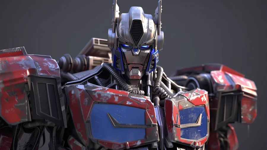 Primer Plano Detallado De Optimus Prime Mostrando Su Armadura Desgastada Por La Batalla Y Diseño Mecánico Intrincado En Vibrantes Colores Rojo Y Azul.