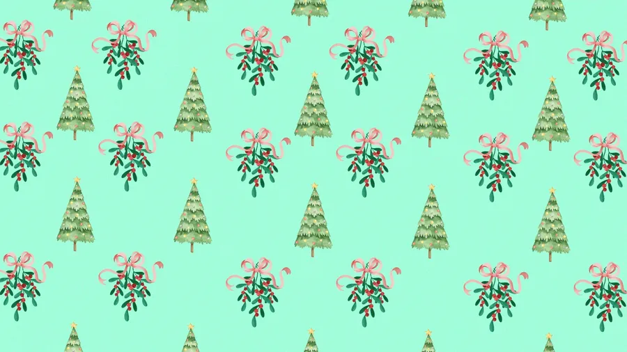 Patrón Festivo Que Presenta Árboles De Navidad Y Lazos Rojos Sobre Un Fondo Azul Claro, Perfecto Para Papel De Regalo Navideño O Decoraciones Estacionales.