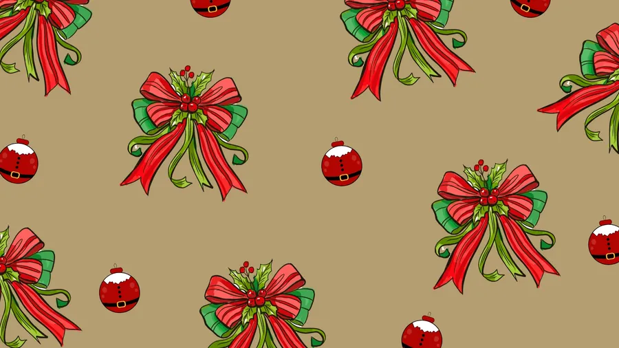 Lazos Festivos Rojos Y Verdes De Navidad Con Acebo Y Campanas Sobre Un Cálido Fondo Marrón, Perfectos Para Diseños De Envoltura Y Decoración Navideña.