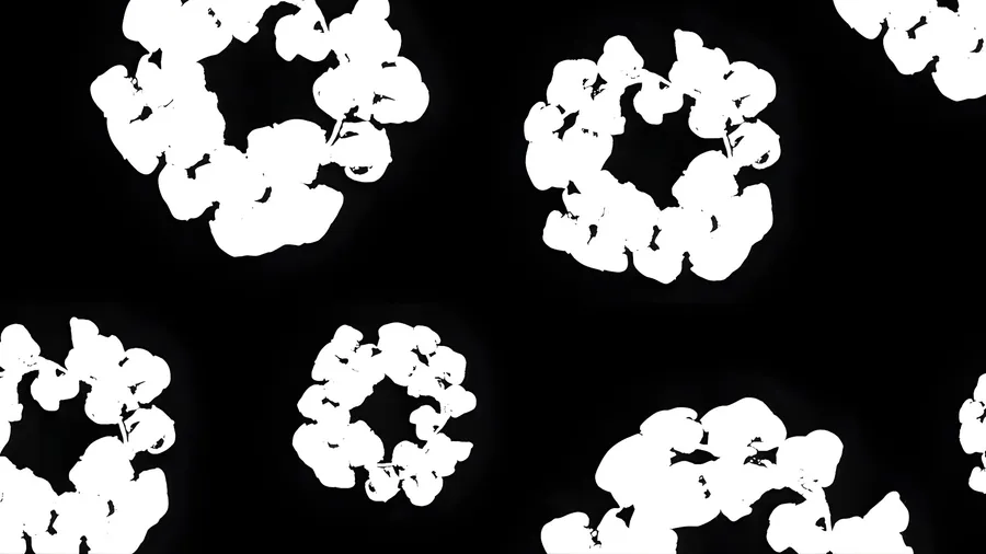 Diseño Floral En Alto Contraste En Blanco Y Negro Inspirado En La Estética De Denim Tears, Con Formas De Flores Abstractas En Un Patrón Repetido.