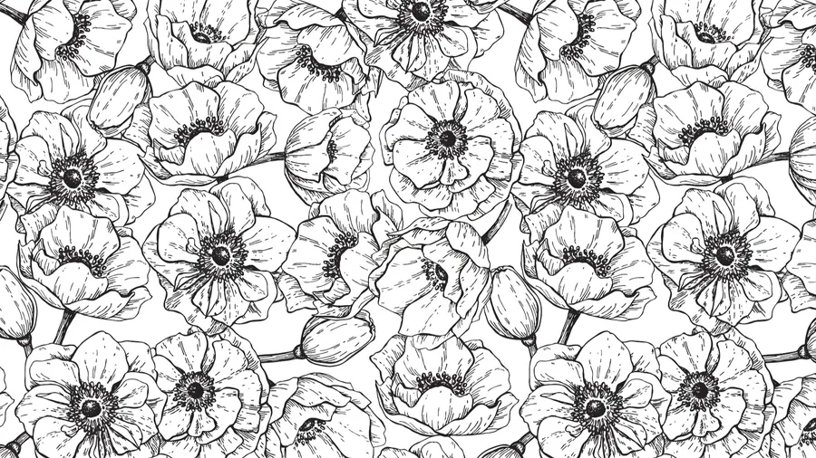 Diseño Floral Monocromático Elegante Que Presenta Flores Y Hojas Dibujadas A Mano En Detalle, Perfecto Para Fondos, Textiles Y Proyectos Artísticos.