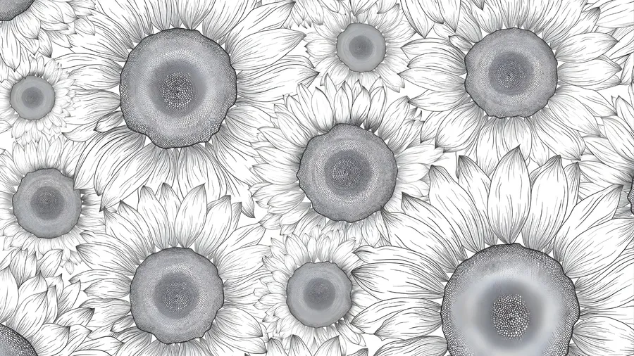 Diseño Floral Monocromático Detallado Que Presenta Flores Superpuestas Con Intrincados Detalles De Pétalos Y Centros Creando Un Patrón Armonioso Y Elegante En Blanco Y Negro.