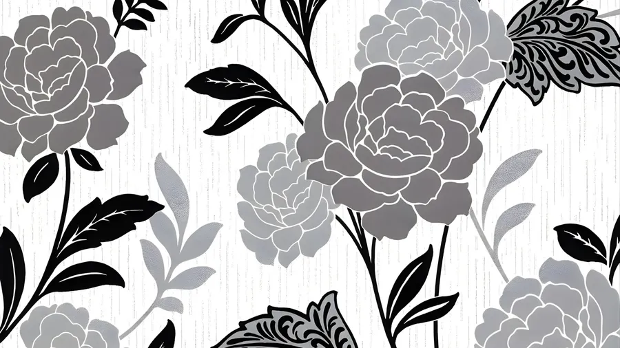 Diseño Floral Elegante En Blanco Y Negro Que Presenta Flores Y Hojas Detalladas, Perfecto Para Papeles Tapiz, Textiles Y Proyectos Gráficos Con Una Estética Monocromática Clásica.