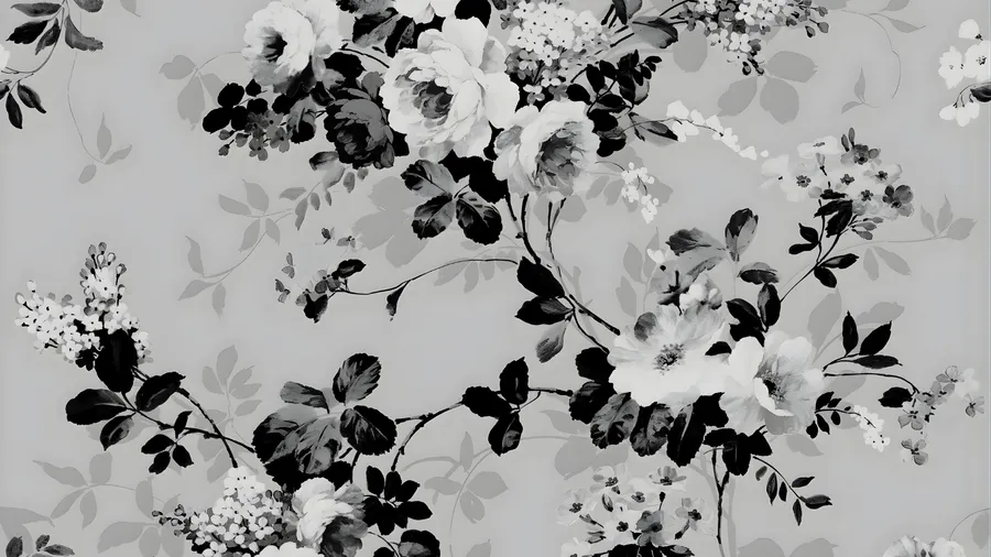 Diseño Floral Elegante En Blanco Y Negro Con Flores Y Hojas Detalladas, Perfecto Para Decoraciones Clásicas Y Atemporales O Impresiones De Moda.