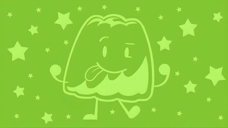 Personaje De Gelatina Verde De Bfdi Con Fondo De Estrellas Y Expresión Juguetona En Estilo Animado.