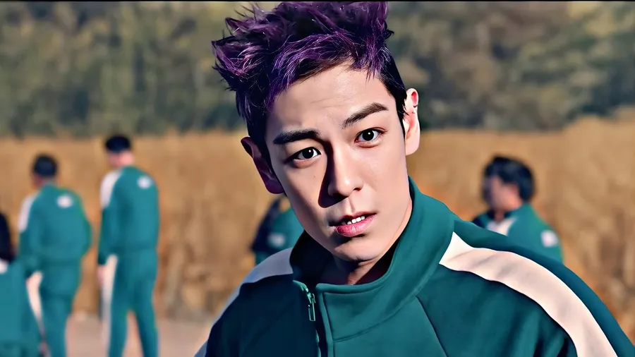 Una Representación Impactante De Un Personaje Inspirado En Squid Game Con Un Giro Único, Fusionando Emociones Intensas Y Suspenso En Un Entorno Dramático.