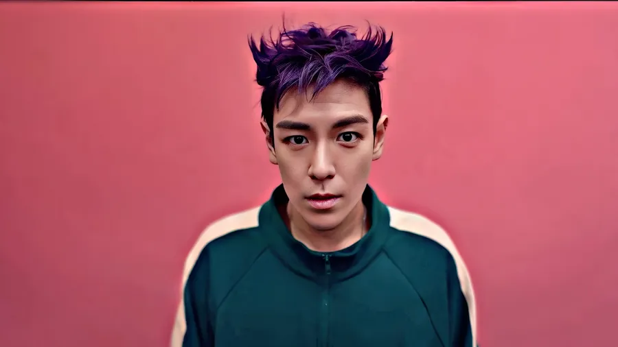 Una Impactante Representación De Un Concursante De Squid Game Inspirado En Thanos, Con Una Expresión Intensa Y Un Peinado Único Contra Un Fondo Rosa Audaz.
