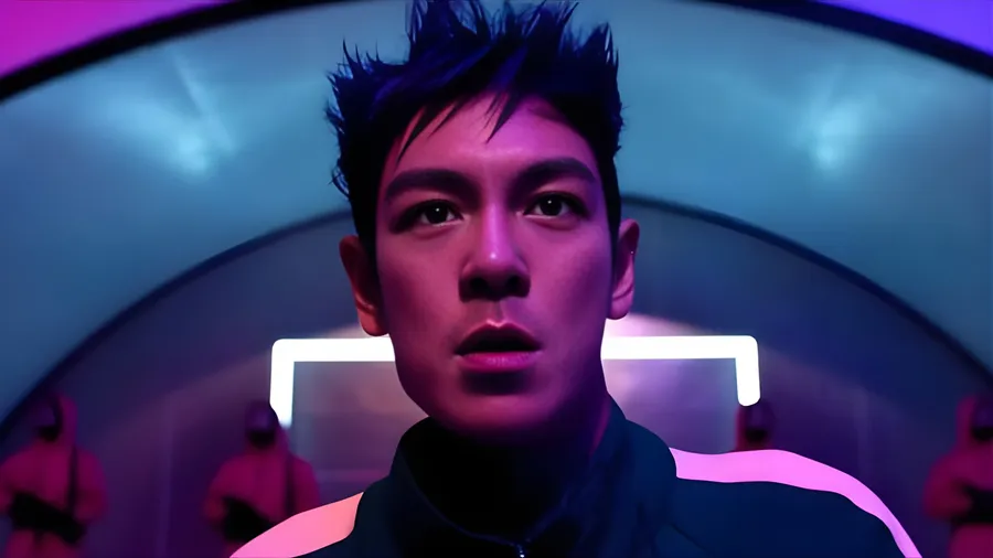 Momento Intenso De Thanos En Squid Game Presentando A Un Jugador Clave En La Competencia De Alto Riesgo Bajo Luces Neón
