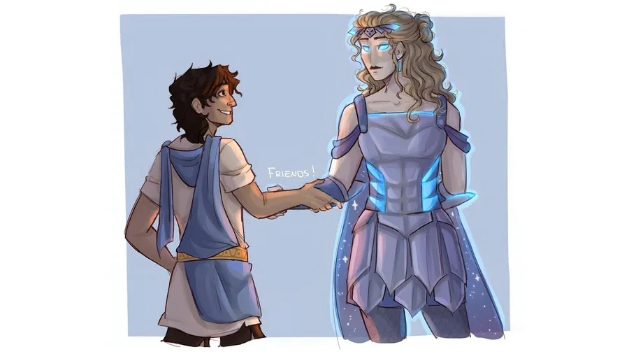 Dos Personajes Clave De Epic The Musical Comparten Un Momento, Destacando La Mezcla De Fantasía Y Aventura De La Historia A Través De Sus Distintos Trajes Y Expresiones.