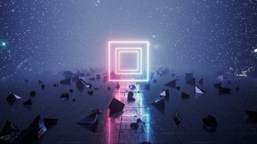 Un Portal Neón Futurista Simboliza La Entrada Al Inmersivo Mundo Digital Del Metaverso, Rodeado De Formas Geométricas Flotantes En Un Entorno Cósmico.