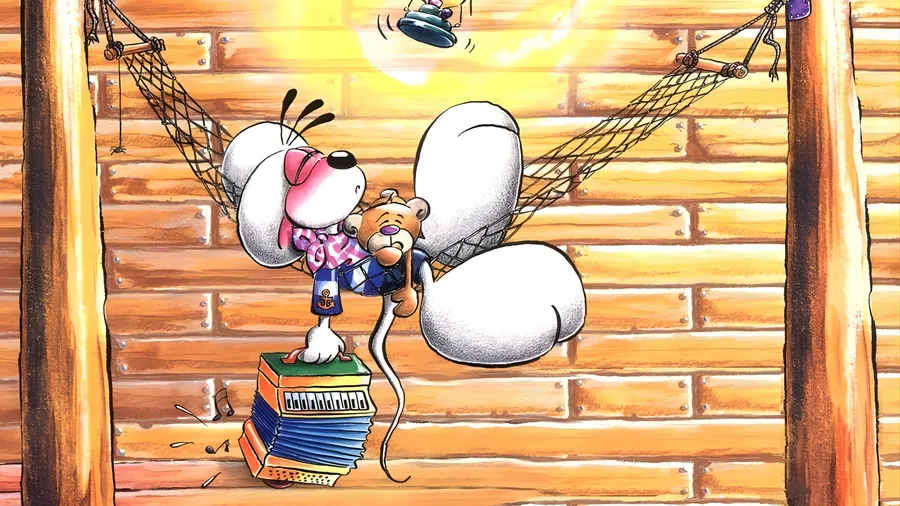 El Ratón Diddl Sostiene Un Oso De Peluche Mientras Cuelga De Un Accesorio De Luz En Una Acogedora Habitación De Madera Con Libros Abajo.