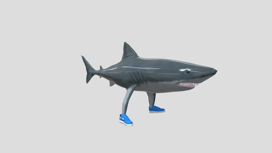 Una Representación Juguetona De Un Tiburón Luciendo Zapatillas Azules Brillantes, Combinando La Vida Marina Con Una Moda Peculiar Para Una Visual Divertida E Imaginativa.