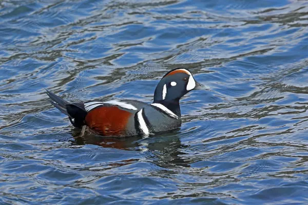 Pato Arlequín Nadando En Aguas Azules Fondos de pantalla -